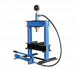 Настольный. Занимает мало места. Основные функции выполняет. Для гаража. Гидравлический, ручной, сборно-разборный. Гидроцилиндр с пуансоном имеет возможность перемещения по всей ширине рамы. Для запрессовки деталей механизмов. Усилие 10 тонн. Интервал пуансона 135 мм. Рабочее окно: 400 x 350 мм.