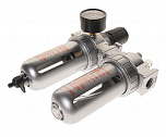 Регулятор давления воздуха с лубрикатором, влагоотделителем и манометром 1/4”. Пропускная способность – 1500л/мин. Давление компрессора 0-10Бар. Снижает давление между компрессором и пневмоинструментом.