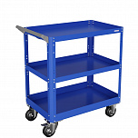 Тележка инструментальная открытая, трехполочная. Идеально подходит для перемещения и хранения небольших агрегатов (стартеры, генераторы, и т.д.) в слесарном и кузовном цеху. Размеры, мм: 855x750x500. Вес, кг: 23