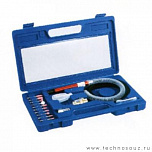 Машинка зачистная гравировальная пневматическая прямая. Зажим - 3мм. Скорость вращения 54 000об/мин. Дополнительно 10шт. зачистных шарошек. Для зачистки, гравировки мелких деталей, маркировки и тонких слесарных работ.