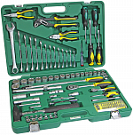 Набор инструментов 1/4" & 1/2" 6-гранный (в кейсе) 85 предметов. В наборе: головки торцевые 1/4", головки с насадкой HEX 1/4", головки с насадкой TORX 1/4", головки с шлицевой насадкой 1/4", головка с насадкой PH 1/4", насадки PZ 1/4", головки торцевые 1/2", свечная головка 1/2", насадка 5/16 HEX 1/2", насадки 5/16 TORX 1/2", насадки 5/16 PH 1/2" для ударной отвертки PH3, PH4, насадки 5/16 PZ 1/2", держатель бит: 1/2х5/16, трещотка 1/4 36 зубцов (резиновая ручка), удлинитель 1/4 50 и 100мм, кардан 1/4", вороток-отвертка 1/4", вороток 1/4" с плавающей головкой, гибкий вал 1/4", трещотка 1/2 36 зубцов, удлинитель 1/2" 125 и 250мм, кардан 1/2", переходник 3/8х1/2 с отверстием, ключи рожково-накидные.