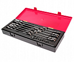 Набор ключей разрезных в прочном презентабельном боксе (10 предметов). В комплекте: ключи разрезные (Евро-тип) – 8х9, 10х12, 11х13, 14х17, 16х18, 17х19, 3/8”х7/16, 1/2”х9/16 – 8 шт. Ключи разрезные с покрытием – 10х11, 10х12 мм. – 2 шт.
