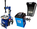 Комплект из полуавтоматического шиномонтажного стенда TS-21, для колёс 99% автопарка России. Для дисков: 11÷20”. В комплекте: пистолет для подкачки шин + монтажка + пластиковые накладки на зажимные кулачки + регулятор давления с влагоотделителем и манометром. + TS-550 Балансировочный станок (с лазером) Для дисков: 10÷24” (254-609 мм). В комплекте: кожух с автозапуском + клещи + кронциркуль + быстрозажимная гайка + набор конусов.