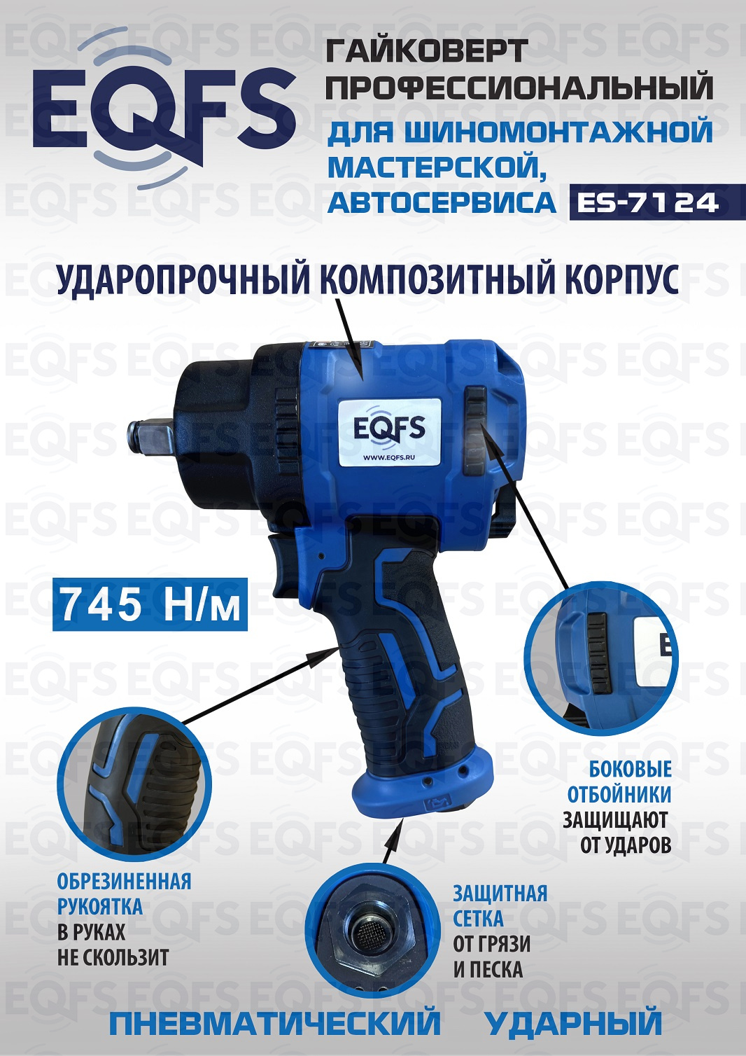 Преимущества ES-7124 Пневмогайковерт 1/2" короткий: