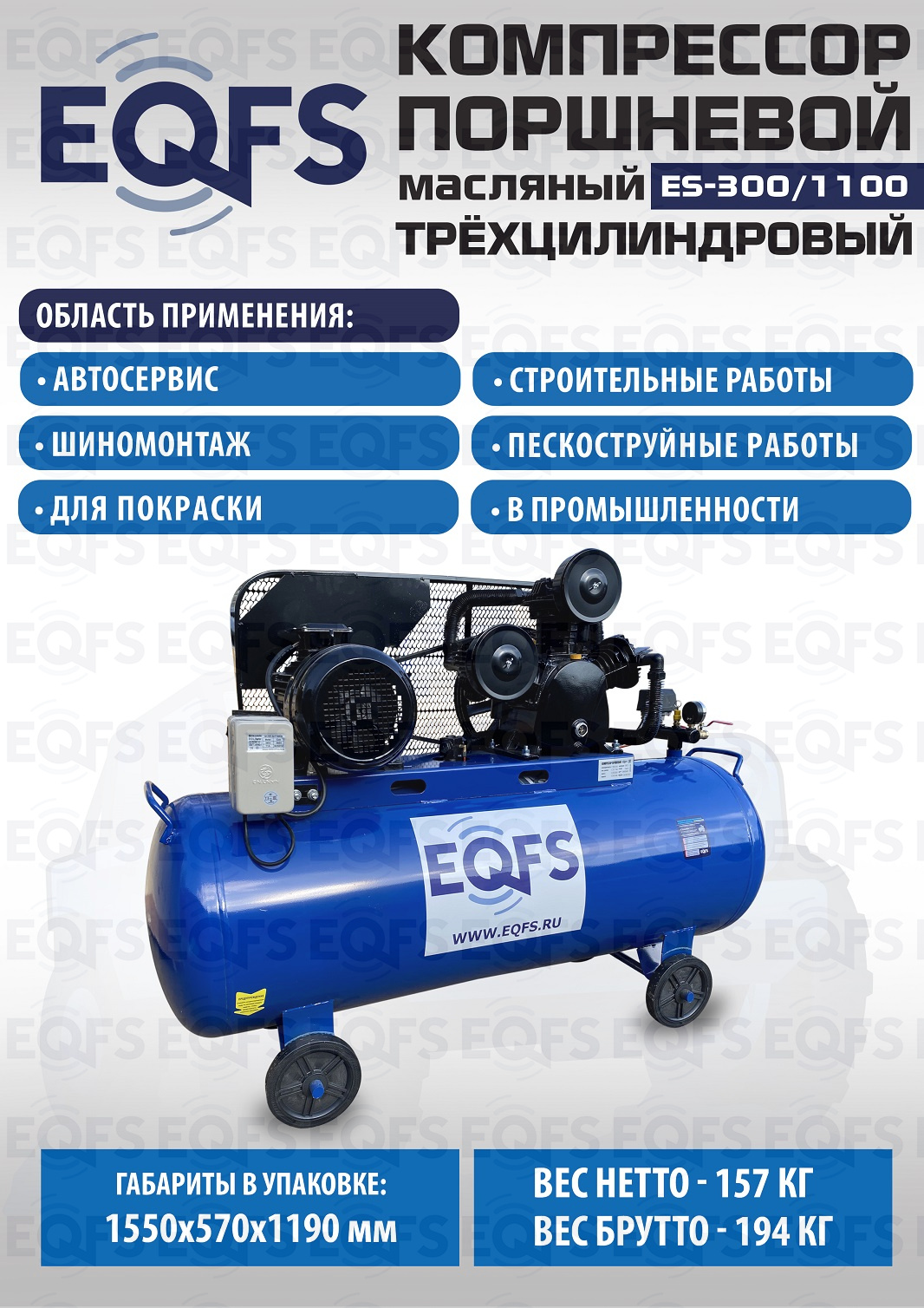 Технические особенности компрессор поршневой ES-300/1100 (5 кВт):