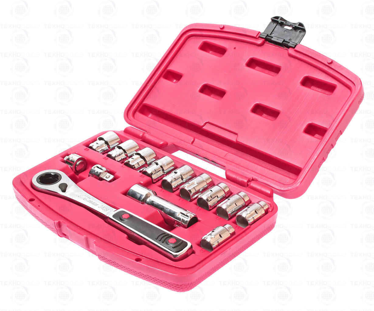Набор головок со сквозным отверстием 10-19 мм в кейсе 14 предметов. В комплекте: головки: 10, 11, 12, 13, 14, 15, 16, 17, 18, 19 мм, адаптеры под ключ 3/8, 1/4, удлинитель и трещотка с реверсивным механизмом 72 зуба.
