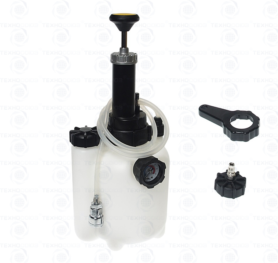 Емкость 3 л. Приспособление для замены тормозной жидкости. Поставляется в комплекте с адаптером и ключом.