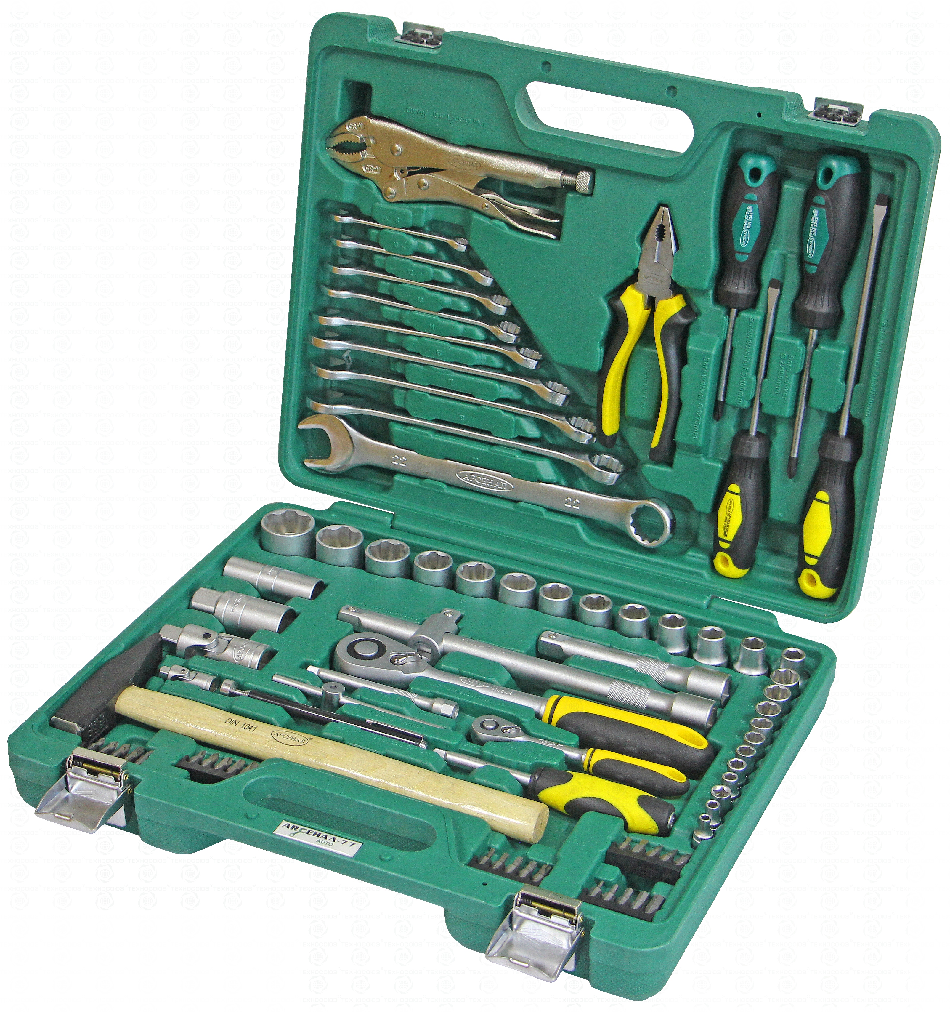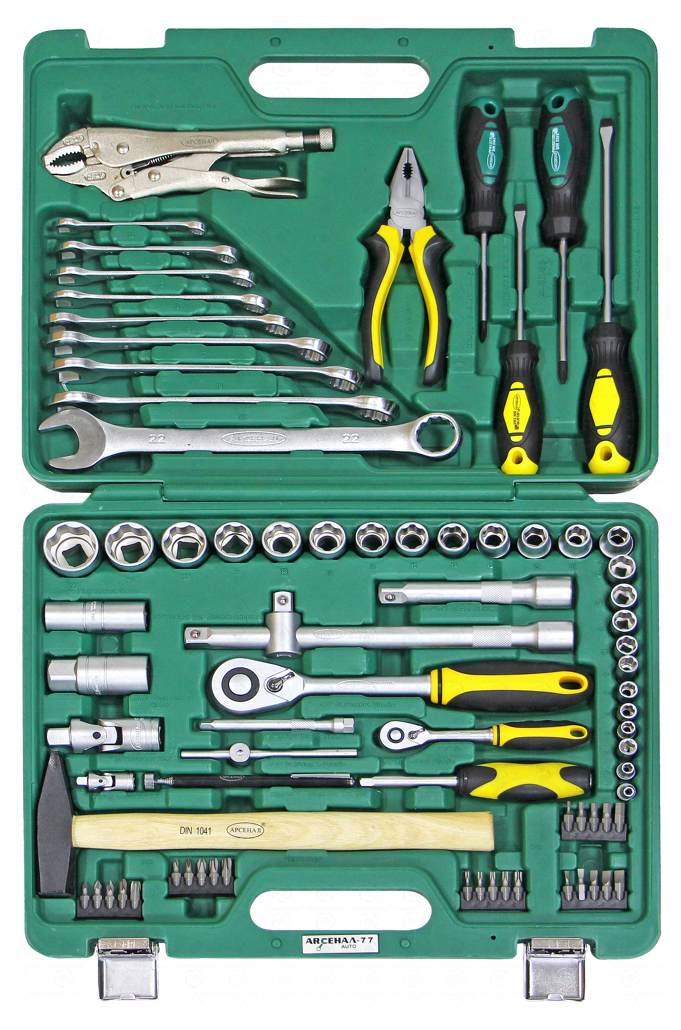 Набор инструментов 77 предметов AUTO Арсенал AA-C1412L77 является серьезным помощником даже для самых трудных задач в области самостоятельного ремонта и обслуживания автомобиля. Грамотный подбор головок, ключей, отверток позволит ремонтировать автомобиль самостоятельно. Сталь, из которой изготовлен инструмент, легирована хромом и ванадием с нанесением никелевого покрытия. Крепкий кейс из ударопрочной пластмассы. Наборы инструментов Арсенал имеют пожизненную гарантию. Инструмент Арсенал - Специально разработан для Российских условий!!!