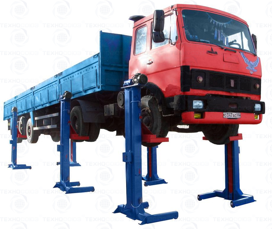 г/п 24 тонны. Шестистоечный. Подкатной. Электромеханический. Привод червячный редуктор, с концевыми выключателями нажимного действия, ограничивающими ход каретки. Для грузовых автомобилей и автобусов. Подъем осуществляется за колёса, диаметр колёсных дисков 20-22 дюйма. Управление производится одновременно всеми стойками. В случае остановки электродвигателя одной из стоек, отключается питание всех электродвигателей. Комплектуется 4 страховочными подставками. Поставляется в 2 вариантах Стандарт (в помещение) и ТЗ (Для эксплуатации на улице).