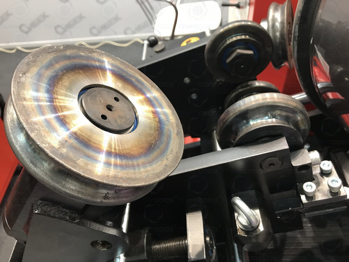 Основным преимуществом стенда является применение мощной гидравлики для перемещения и прижатия прокаточных роликов к диску, что позволяет станку справляться с ремонтом больших, до 17 дюймов в диаметре и до 3 мм толщиной стальных колёс легкогрузовых автомобилей и микроавтобусов.