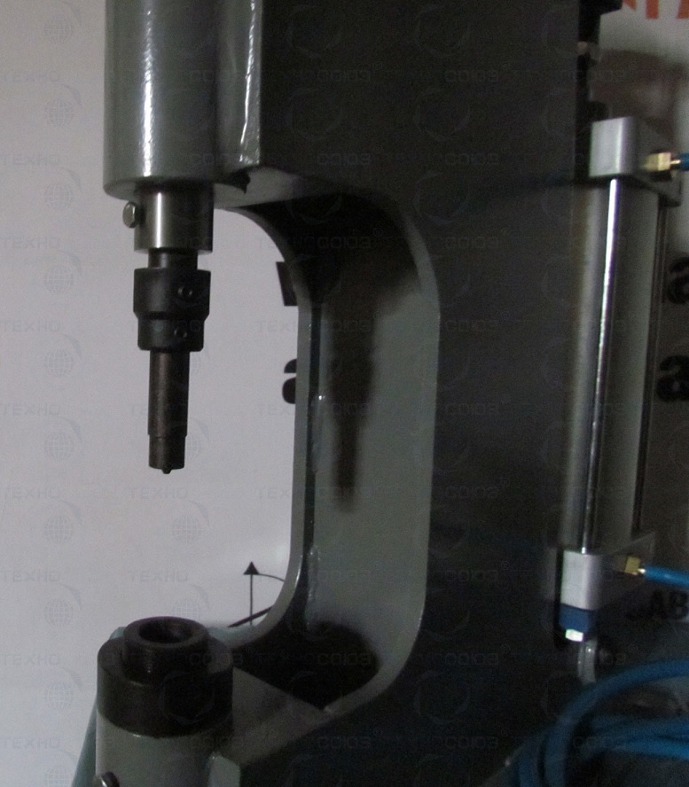 Клепальный пресс применяется при замене изношенных накладок при ремонте автомобилей на станциях технического обслуживания и автотранспортных предприятиях, имеющих пневмосеть. Тормозная колодка неподвижна, рабочий пуансон опускается сверху. Пуансоны легко заменяются, величину хода удобно настроить. Конструкция пресса проста и ремонтопригодна.