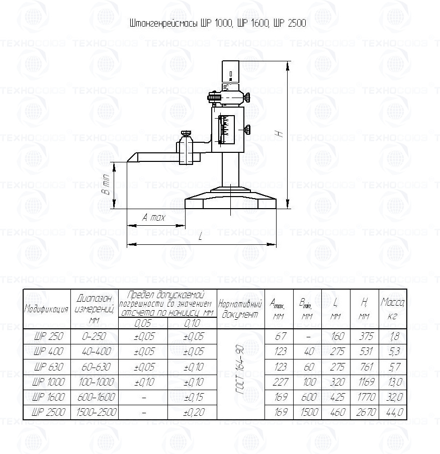 Цена деления 0,20 мм. Диапазон измерения от 1500-2500 мм. Предназначены для измерения и разметки размеров. Вдоль штанги перемещается рамка, к которой прикреплена разметочная или измерительная ножки. Разметочная ножка оснащена твердым сплавом. Рамка имеет нониус, а для облегчения установки на требуемый размер снабжена микрометрической подачей. Основные детали штангенрейсмаса хромированы. ГОСТ 164-90. Поставляется в двух вариантах с поверкой и без поверки!