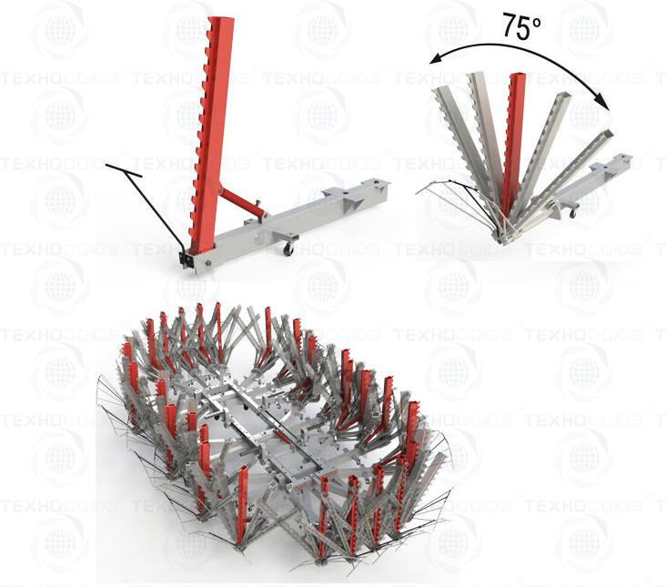 Два различных силовых устройства, каждое оснащено гидроцилиндром 10т. 2-х шарнирное силовое устройство - удобно для создания противовектора тяги и дополнительной фиксации кузова автомобиля на стапеле. 3-х шарнирное силовое - более гибкий подход к выбору направления вектора тяги. Силовые устройства могут устанавливаться в 7 посадочных мест, при этом общее число положений силового устройства достигает 140 вариантов.
