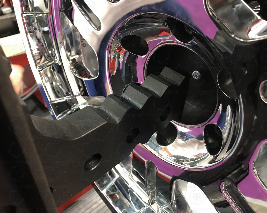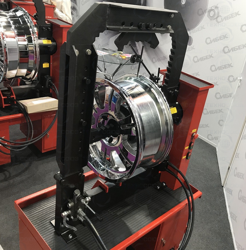 Разница между этим станком и хорошо себя зарекомендовавшим станок для правки дисков Фаворит это возможность изменять наклон рабочего кронштейна. Для установки диска часть скобы отводится в нерабочее положение, затем диск устанавливается на планшайбу, скоба возвращается в рабочее положение и фиксируется. Опция особенно удобна при работе с большими и широкими дисками.
