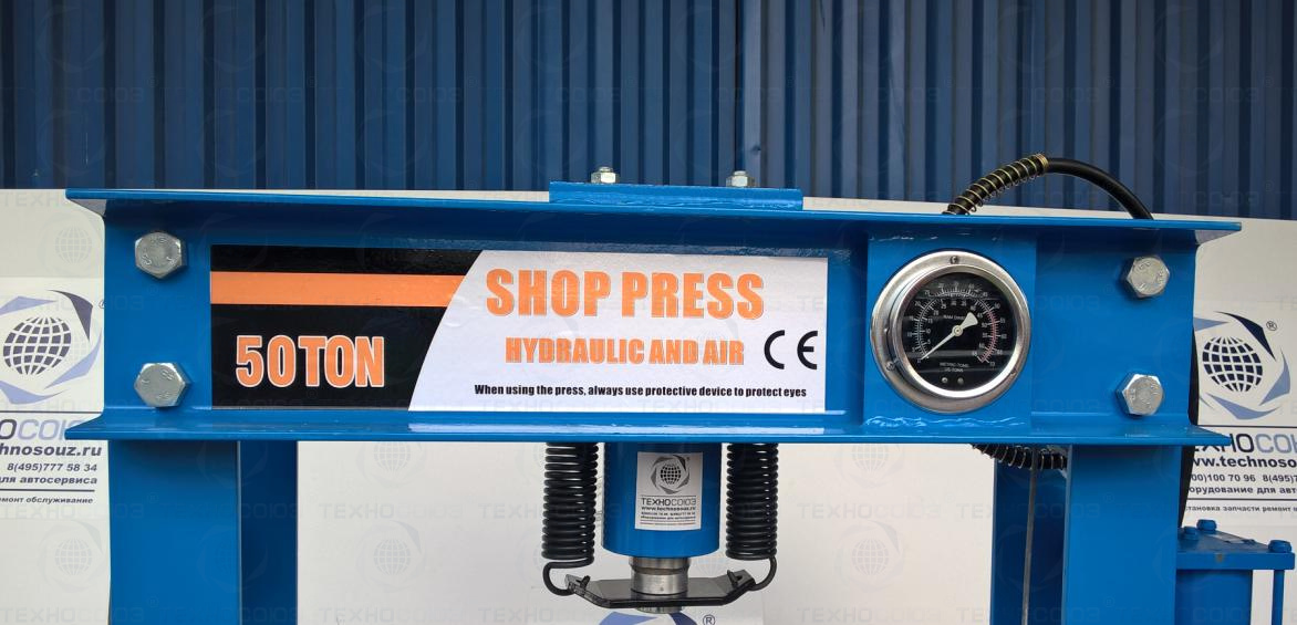 • Пресс укомплектован гидравлическим ручным насосом с максимальным усилием 50т.