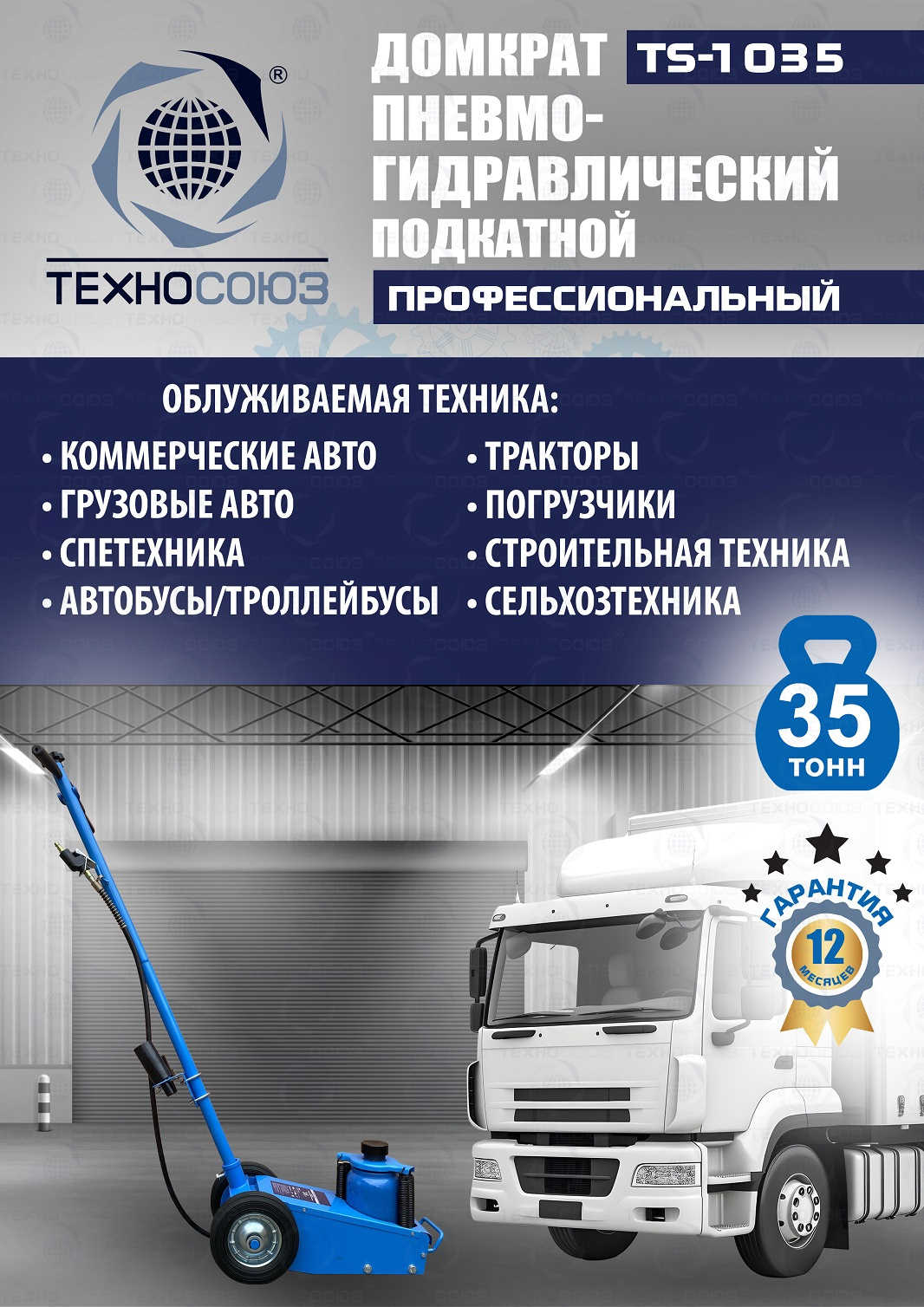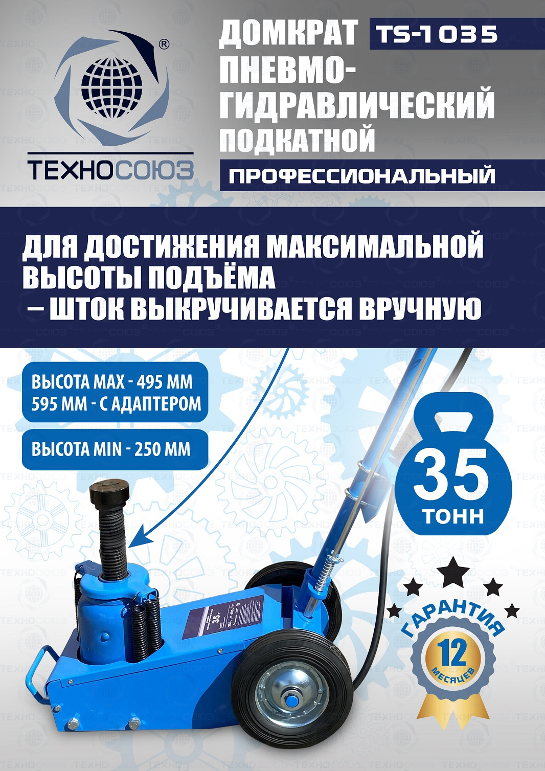 Технические особенности TS-1035 пневмогидравлический подкатной грузовой домкрат: