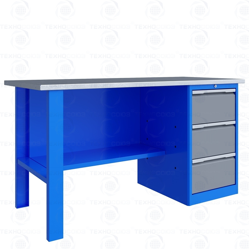 Однотумбовый. Допустимая нагрузка на столешницу 750 кг. Опорные элементы выполнены сварными из холоднокатаной стали. Для выполнения сборочных, ремонтных, слесарных, монтажных и других видов работ на производстве, в сервисных центрах, мастерских, гаражах, а также для обучения технологии в учебных заведениях. Комплектуется полкой-стенкой, расположенной под столешницей для удобного размещения габаритного инструмента и оснастки. Размеры верстака: 855x1596x696 мм. Вес: 81 кг. Поставляется в 4 комплектациях на выбор.
